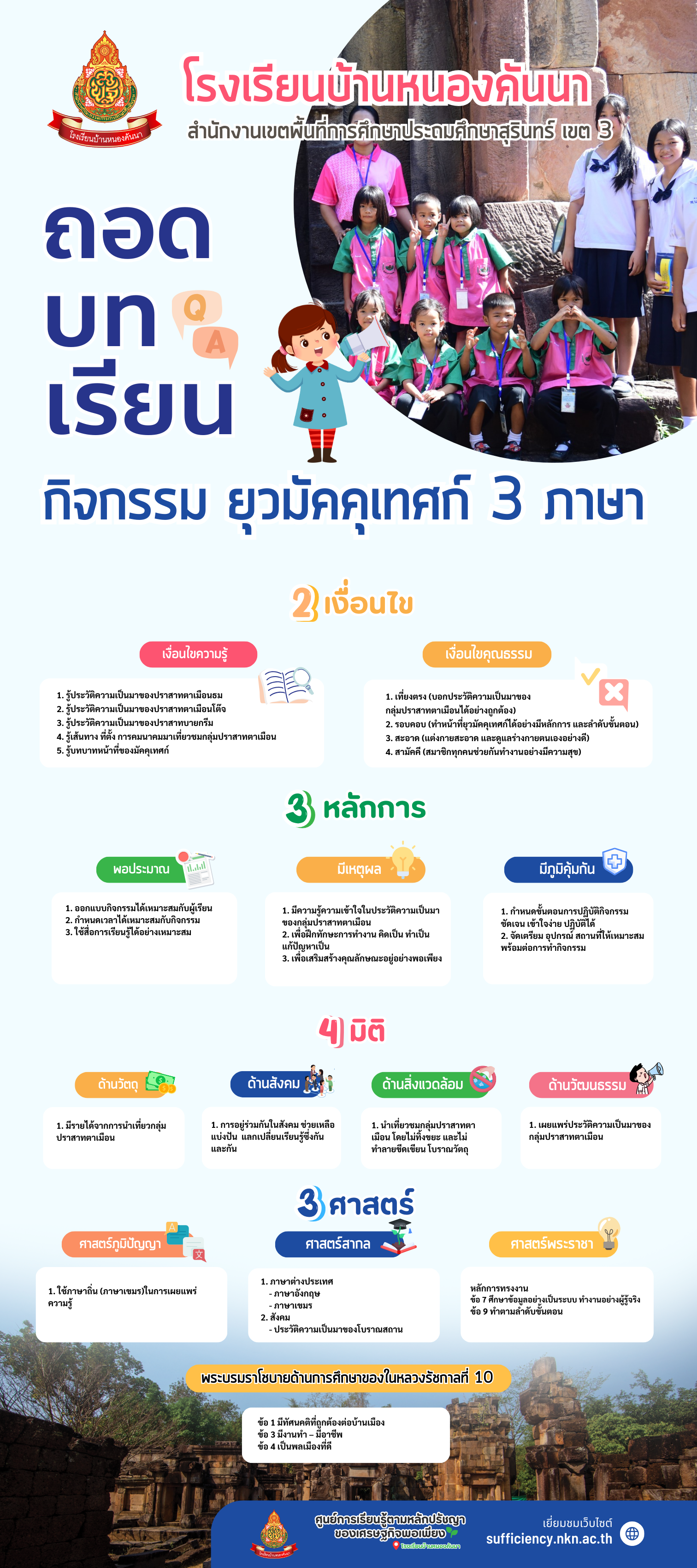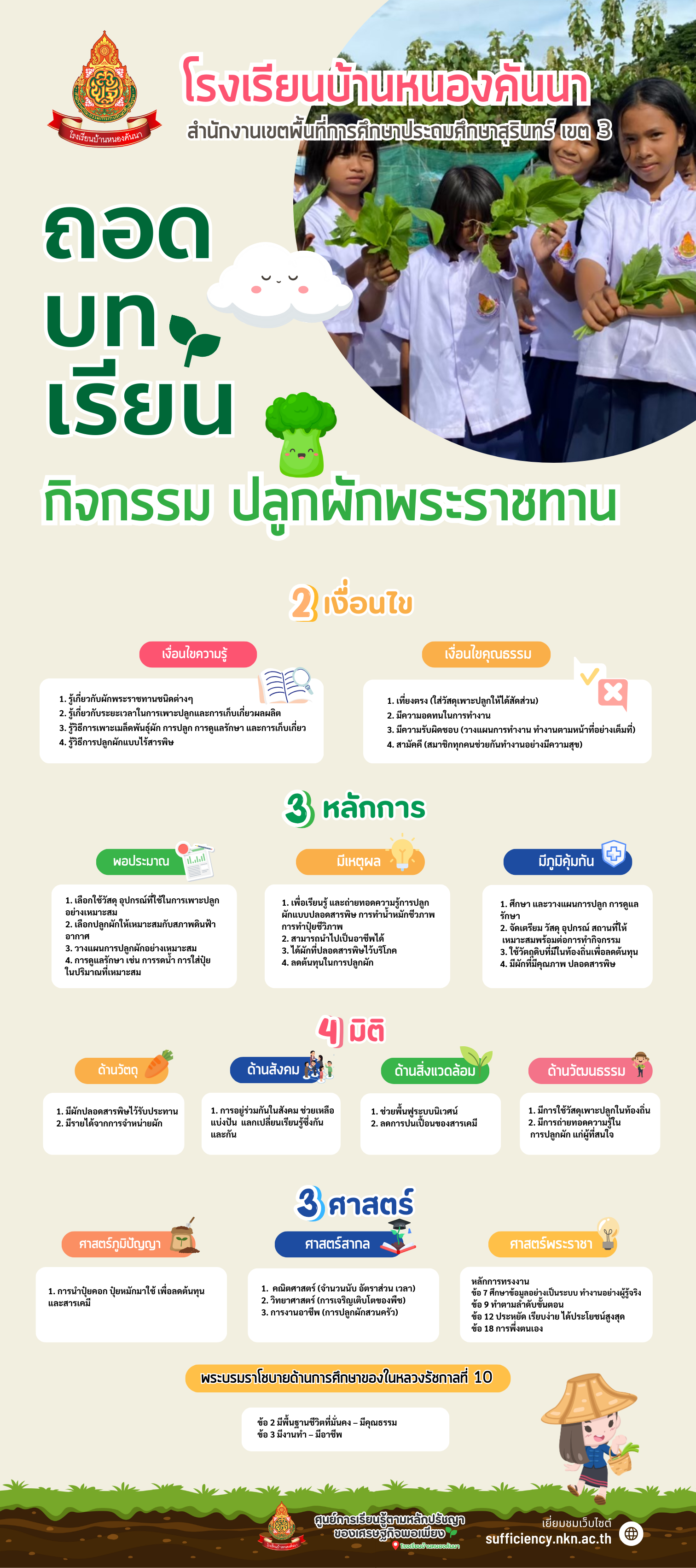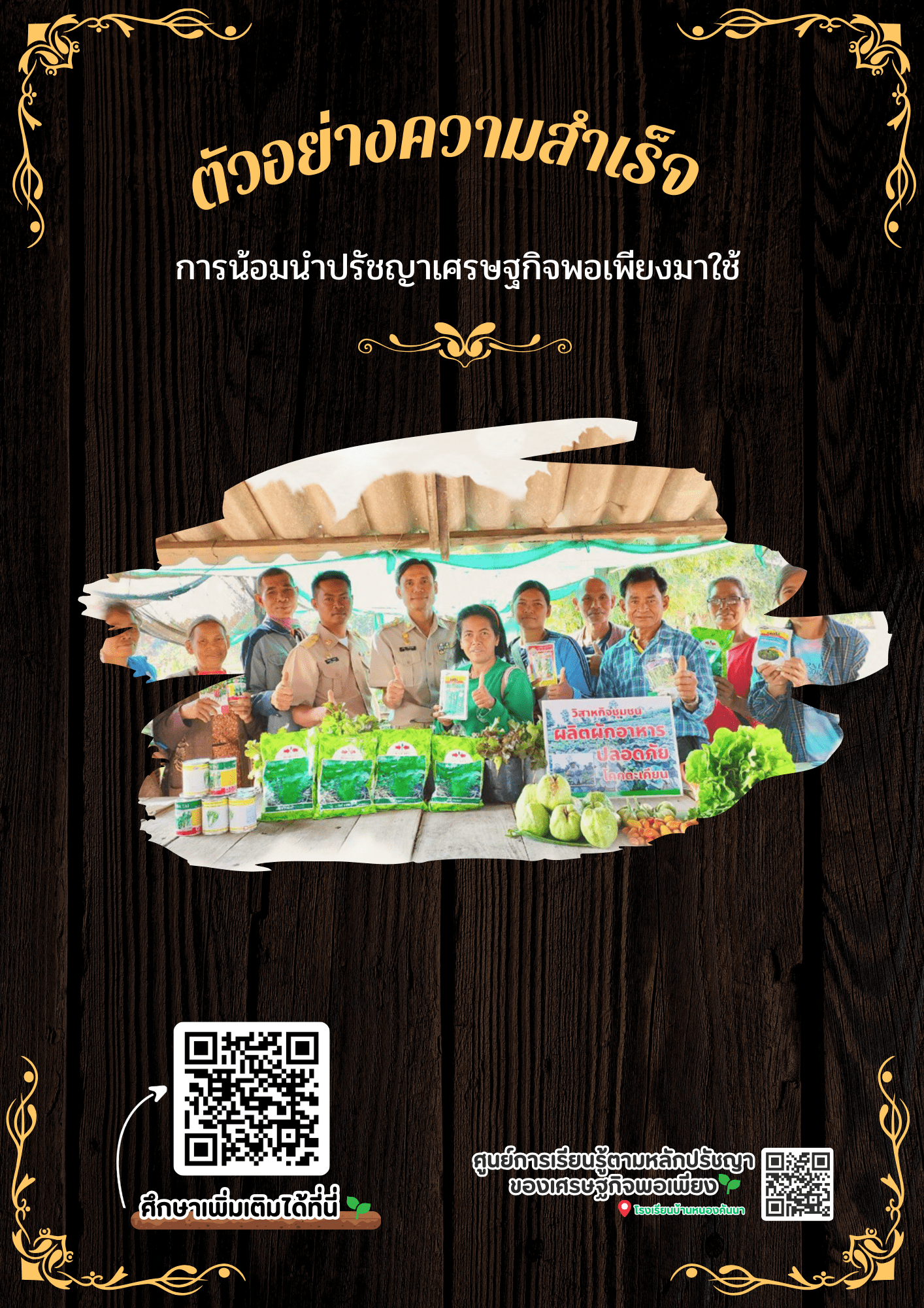- โรงเรียนมีแหล่งเรียนรู้และมีสภาพแวดล้อมที่เอื้อต่อการเรียนรู้ตามหลักปรัชญาของเศรษฐกิจพอเพียง