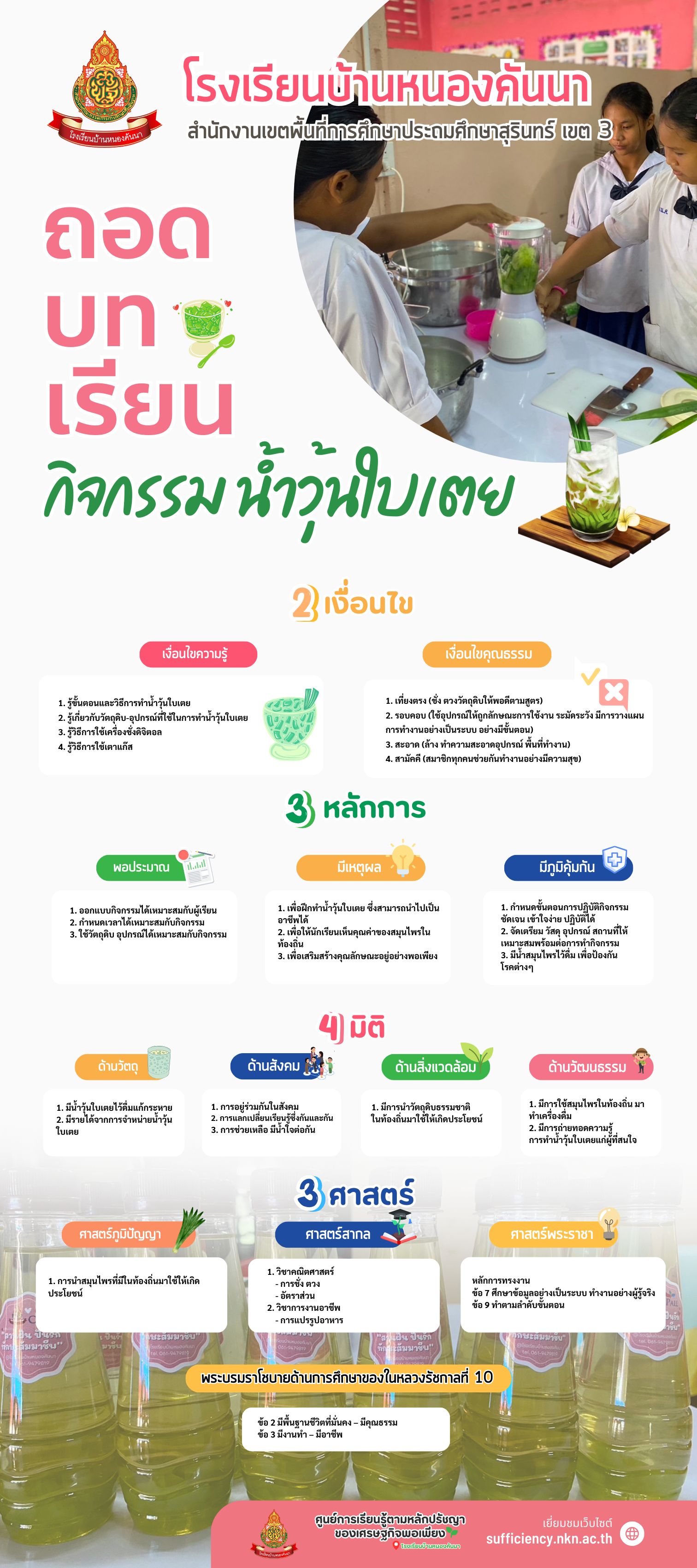 - นักเรียน มีความรู้ ความเข้าใจในหลักปรัชญาของเศรษฐกิจพอเพียง สามารถถอดบทเรียน และมีนิสัยที่พอเพียง